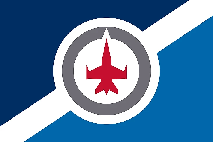 Этот флаг представляет собой комбинацию структуры городского флага со стилизованным логотипом клуба, вдохновленным символикой канадских ВВС. Цвета взяты с домашних свитеров «Джетс».