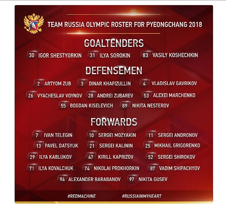 В четверг сборная России по хоккею огласила состав на Олимпийский турнир в Пхёнчхане.