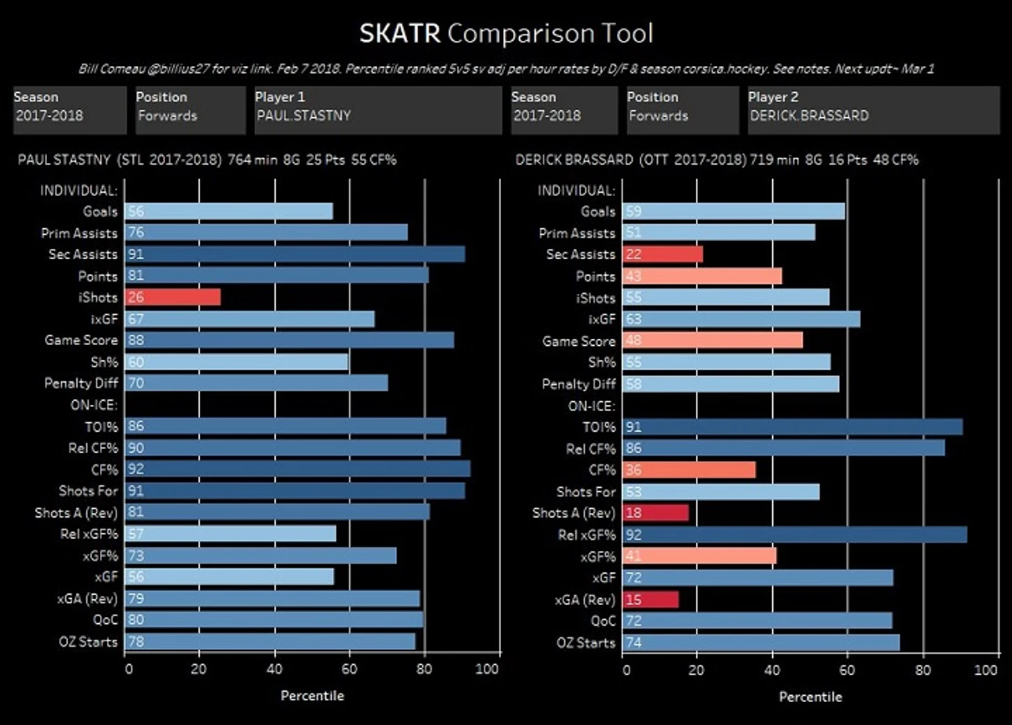Кого же получил «Виннипег» в лице Штястны? По сути, это почти полная копия Брайана Литтла, как по статистике, так и по манере игры. Вполне возможно, что они станут взаимозаменяемыми центрами 2-3-го звеньев. Пока все выглядит так, что Штястны начнет играть в сочетании с Элерсом и Лайне на краях. Пасовать Пол любит и, что самое главное, умеет, поэтому проблем быть не должно. Да, 70 очков за сезон остались в далеком прошлом, но Штястны может дать своим крайним нападающим гораздо больше, чем Копп или Лаури. Если сравнивать Штястны с возможными претендентами на усиление состава «Джетс» Брассаром и Плеканецом по показателям продвинутой статистики в пересчете на 60 минут игрового времени, то Пол опережает обоих.