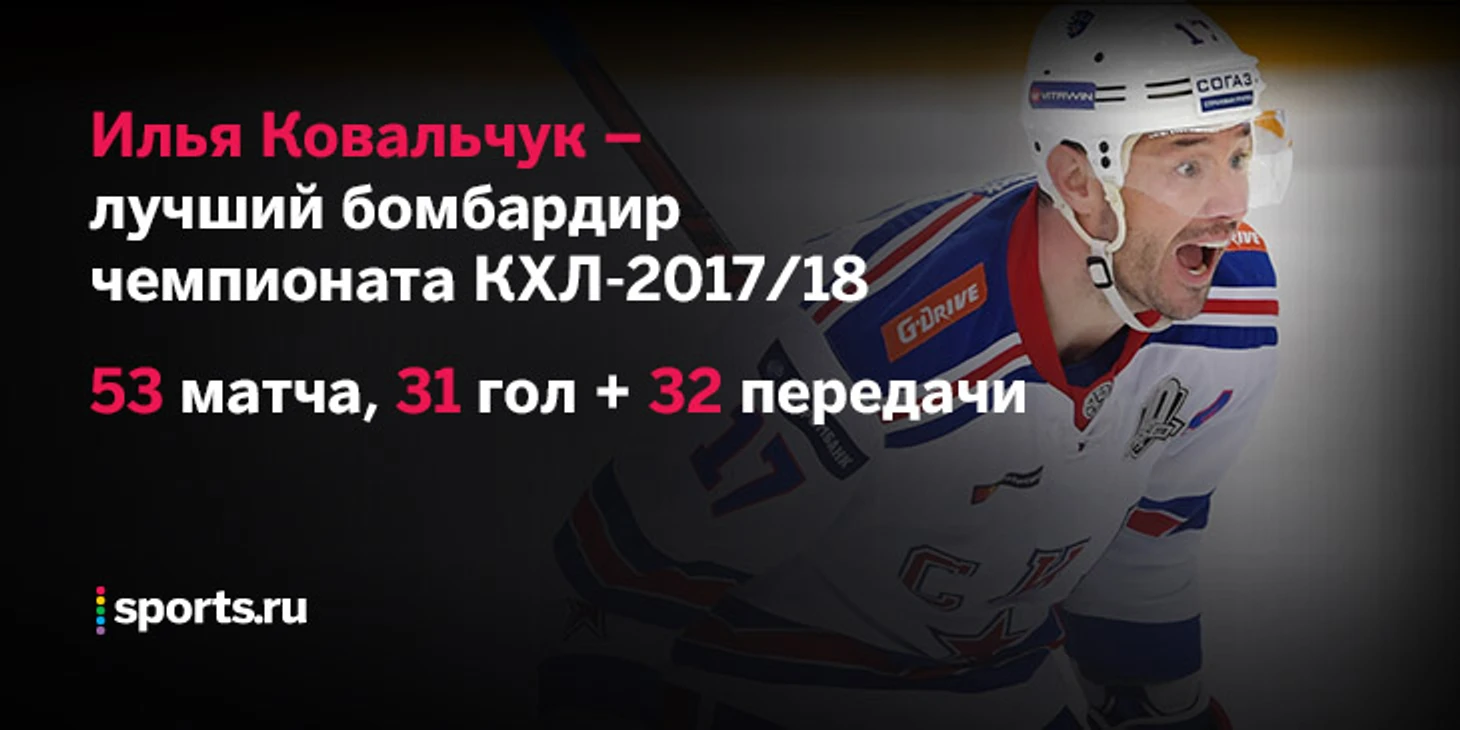 - Илья Ковальчук – лучший бомбардир чемпионата КХЛ с 63 очками;