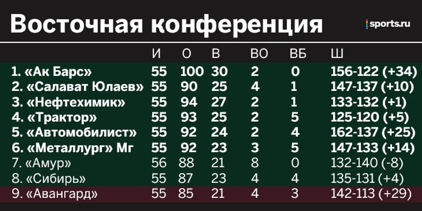 - «Авангард» и «Амур» вышли в плей-офф на Востоке. Омичи забили гол, выводящий их в восьмерку, за минуту до конца матча с «Барысом», а хабаровчане вообще проиграли «Адмиралу» по буллитам;