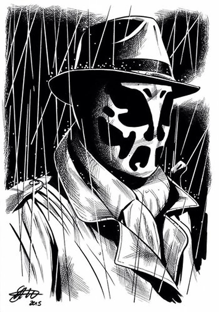 Роршах - нуарный детектив, один из героев графической новеллы "Хранители". Он не является самым сильным персонажем произведения, но, пожалуй, большинство зрителей сильнее всего зацепил его образ. Хотя явно не совсем здоровый психически, часто жесткий в своих методах мужчина далеко не самый однозначный персонаж даже на фоне своих непростых характером соратников. Но именно его приключения запоминаются сильнее всего.