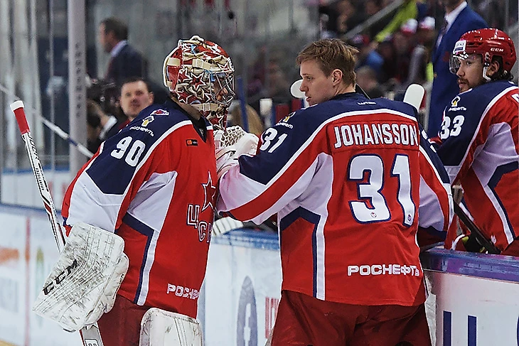 Вместо Сорокина на лед вышел Ларс Юханссон, отыгравший на ноль предыдущий матч серии. Швед и на этот раз действовал идеально: он отразил все 33 броска СКА и спас москвичей в овертайме.