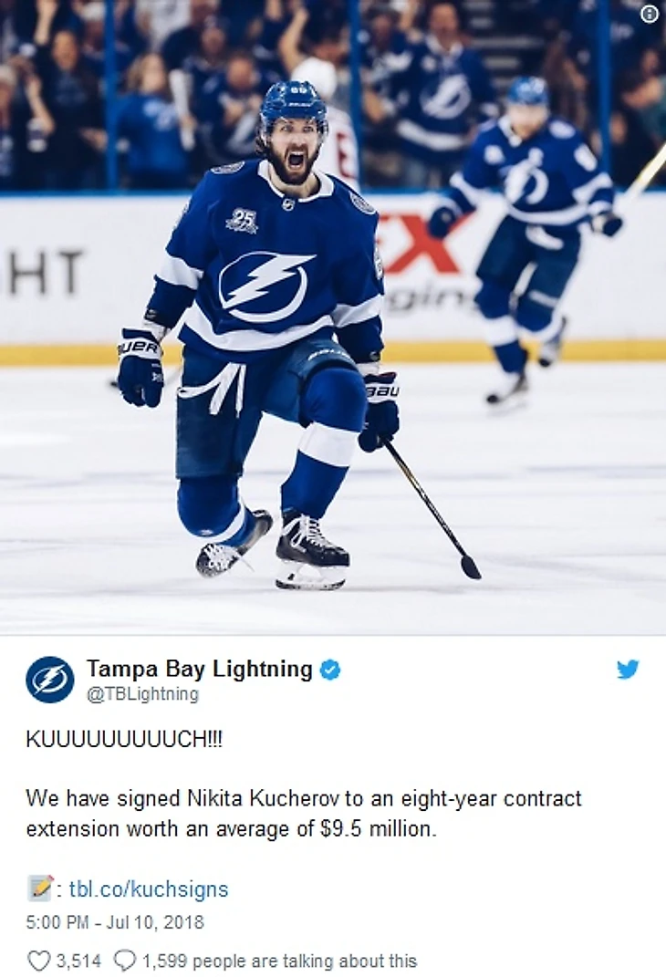 Такой контракт Кучерова прогнозировался. У журналистов по обе стороны океана можно часто еще увидеть восклицания: как же Айзерман будет умещать весь свой состав под потолок зарплат? Мы же, однако, их опасений не разделяем и приглашаем вас согласиться с нашим мнением.