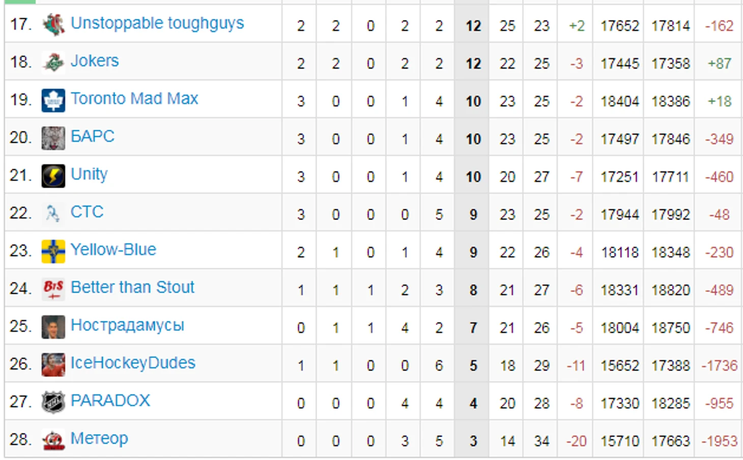 Третье, что команда new nhl ,лидер по набранным ФО, имеет приличный результат в 19120, что являлось бы 5м результатом среди команд турнира NHL.