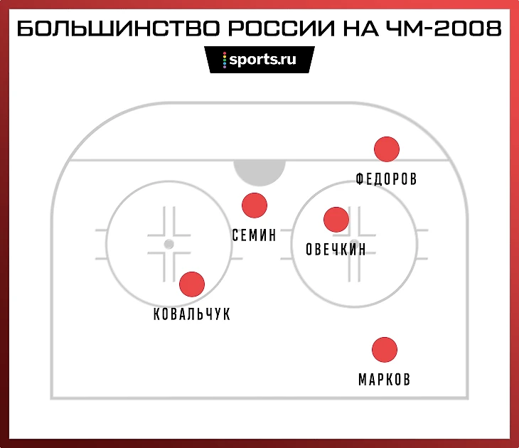 Когда шайбу у борта контролировал Федоров, Семин двигался на пятак, Овечкин – к правой точке вбрасывания, а Ковальчук – ближе к воротам.