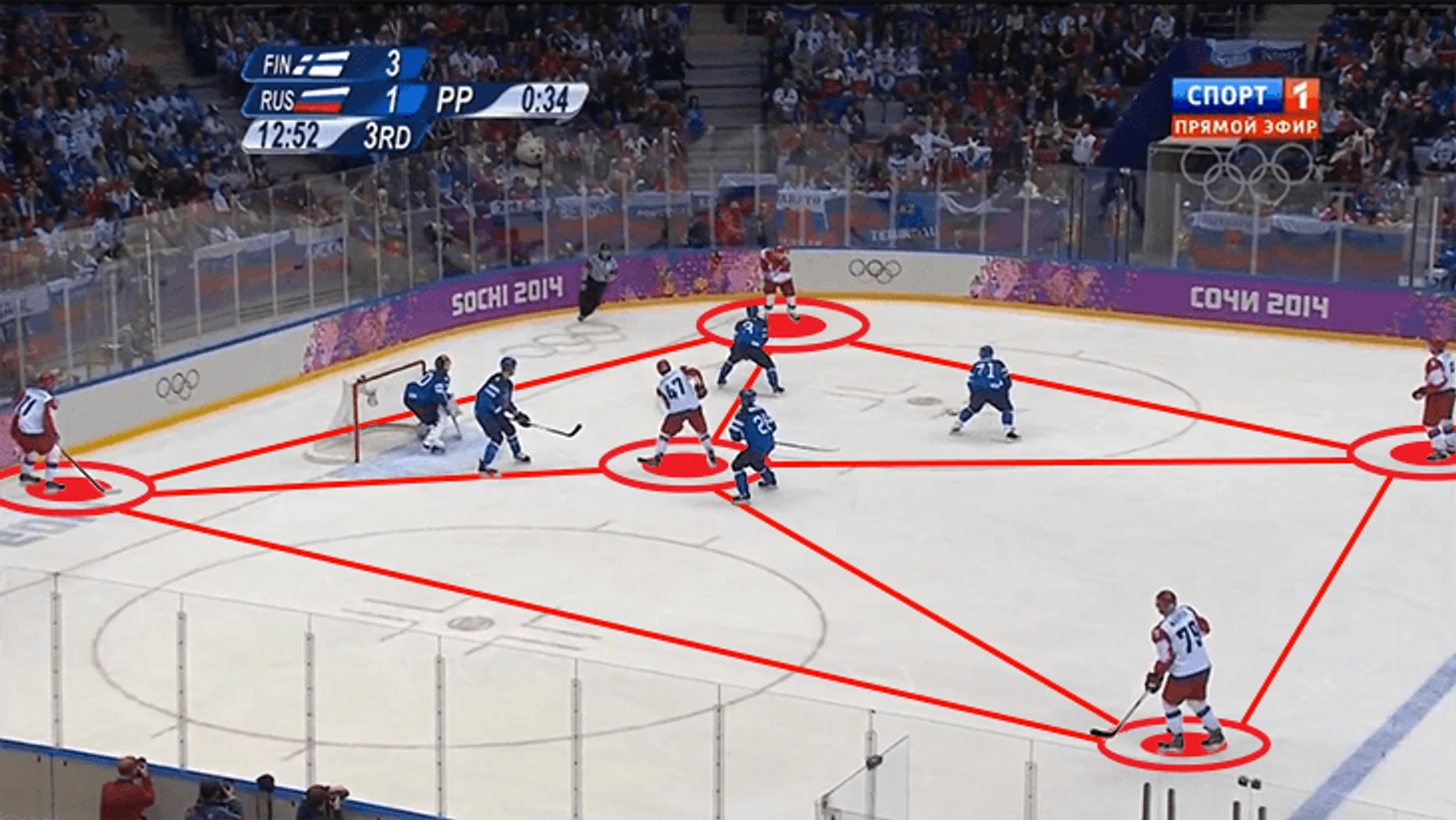 Знаете, в чем реальная уникальность этой схемы? Так не играет ни одна команда в НХЛ. На это в тексте про розыгрыш большинства пожаловался Райан Стимсон, в сезоне-2013/14 – аналитик «Нью-Джерси». «В последние годы в НХЛ по умолчанию используют схему 1-3-1», – написал он.