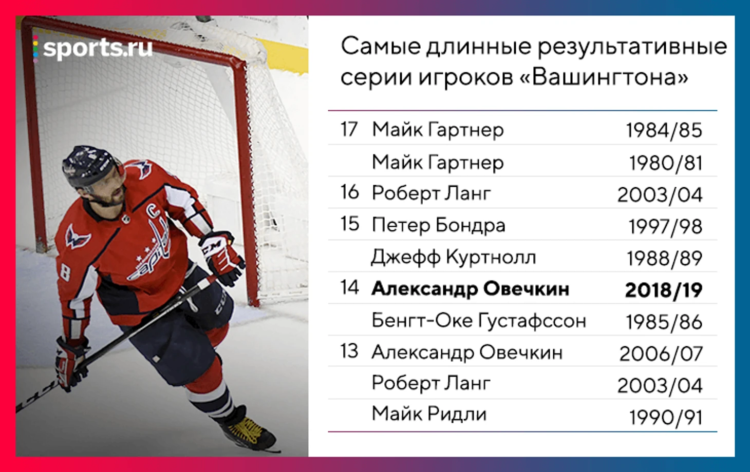 Овечкин снова забил. У него никогда не было такой результативной серии