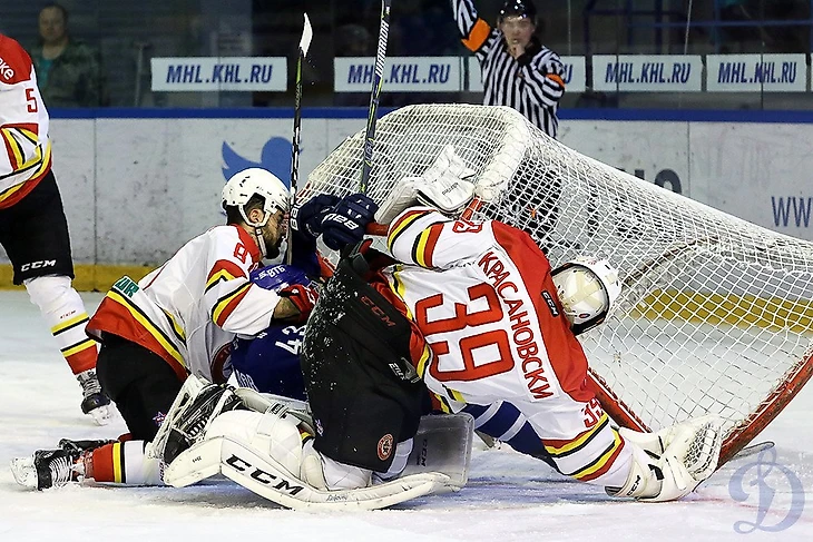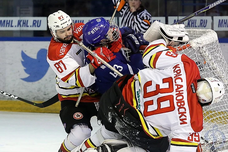 Эпизод начался с того, что форвард москвичей Егор Брызгалов заехал на чужой пятачок, где сбил вратаря «Хэйлунцзяна» Филипа Красановски. Это не понравилось защитнику гостей Никите Полухину – и он завалил соперника, а Красановски помог прижать того воротами.