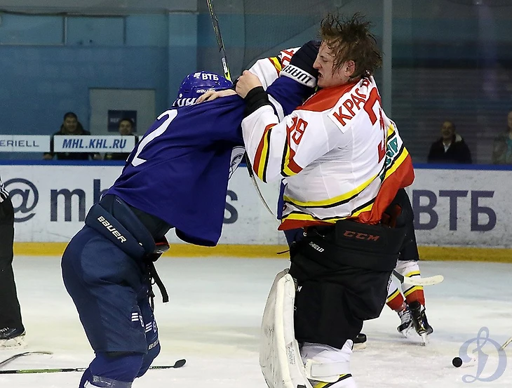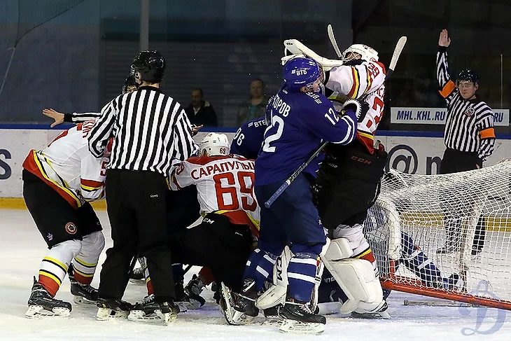 Пока Брызгалов выбирался, разгорелось еще несколько драк: Григорий Бабушкин против Евгения Лукина, Михаил Семенеко против Максима Сарапульцева, а защитник хозяев Даниил Егоров отбивался от вратаря китайского клуба – чеха подтолкнули, когда началась стычка, и ему это не понравилось.