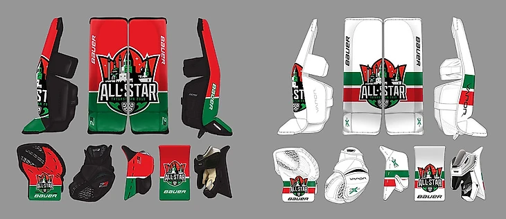 В истории с экипировкой обязательно нужно отметить Якуба Коваржа. Он самостоятельно подготовил к Матчу звезд комплект щитков в цветах уик-энда, а также заказал копию своего первого шлема.