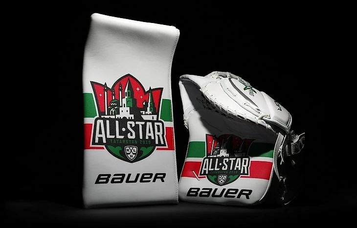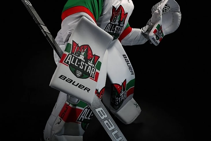 Говоря о стандартном спецзаказе, я немного лукавил. В прошлом году, на Матче звезд КХЛ, мы обсуждали, что нового можно привнести в экипировку звездного уик-энда. Естественно, все стараются сократить издержки, но ребята из российского представительства компании в очередной раз порадовали и реализовали идею с комплектами щитков для пары вратарей, играющих в экипировке «Бауэр». Респект от меня лично. Впервые в КХЛ для Матча звезд изготовлены кастомные вратарские щитки.