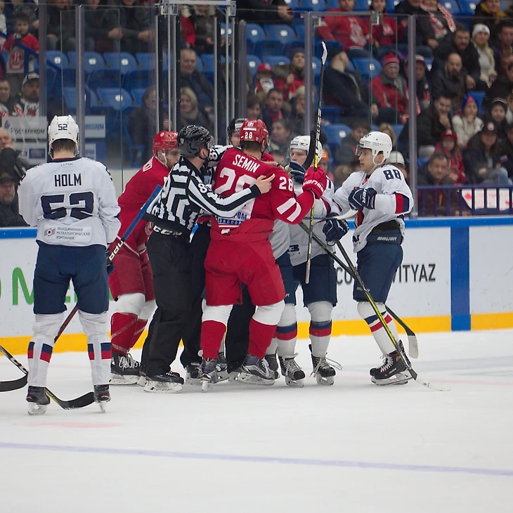 Голы: Варнаков – 10 (Назаревич – 2, Ураков - 5), 8:52 – 0:1. Ураков – 3, 28:04 – 0:2. Кейлоф – 18 (Варнаков – 8, Боди - 12), 36:33 – 0:3. Кейлоф – 19 (Варнаков – 9, Миле - 14), 40:25 – 0:4. Варнаков – 11 (бол., Миле – 15, Кейлоф - 17), 51:30 – 0:5. Назаревич – 1 (бол., Баранцев – 15, Шенфельд - 19), 52:52 – 0:6.