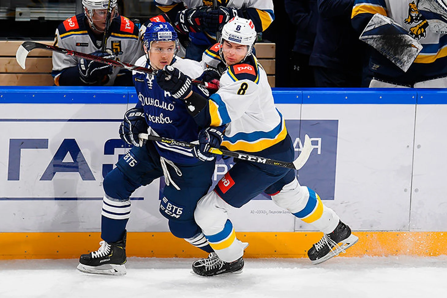• В составе московского «Динамо» отсутствовали два основных игрока: лучший снайпер команды Дмитрий Кагарлицкий (дисквалифицирован за показанный сопернику средний палец) и защитник Андрей Миронов. Отсутствие второго главный тренер «Динамо» Владимир Крикунов объяснил тем, что его отправили на серьезную работу после Евротура и уже идет подготовка к плей-офф. При этом 13 февраля – против «Йокерита» – Миронов играл.
