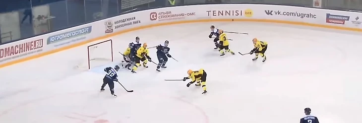 Следующие две шайбы были заброшены в большинстве, но максимально по-разному. Гол Сарыарки это результат нестандартного мышления, исполнительского мастерства и быть может везения. Карагандинцы играли по схеме 1-3-1. Артур Сарваров оказался в квадрате между обороняющимися игроками, но его партнер нашел выход, сделал навесную передачу и поставил в тупик игроков Югры.