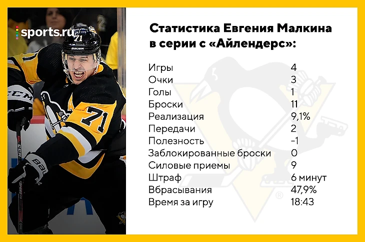 «Я думаю, что сегодня была наша лучшая игра за всю серию, – сказал Евгений Малкин после четвертого матча с «Айлендерс». – И все равно мы забили только один гол».