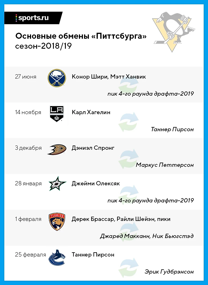 Все эти обмены не исправили ситуацию – сезон стал провальным для «Питтсбурга» и возродил разговоры о более громком трейде. Уже почти 10 лет при любых проблемах у команды на выход отправляют Малкина.