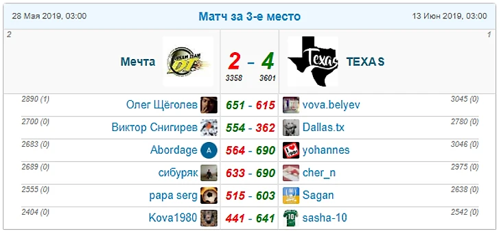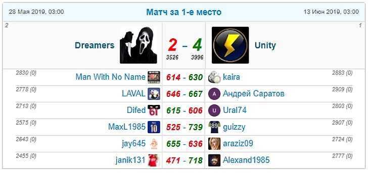 Вот таблица победителей и призеров нашего турнира: