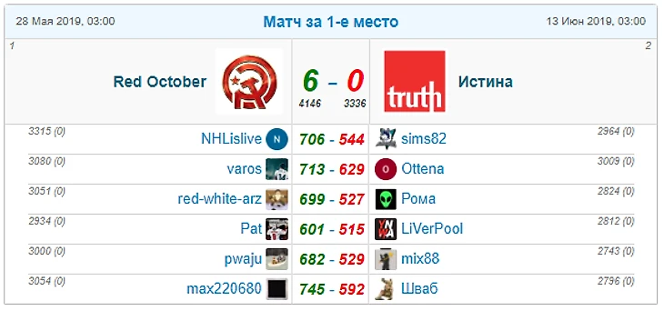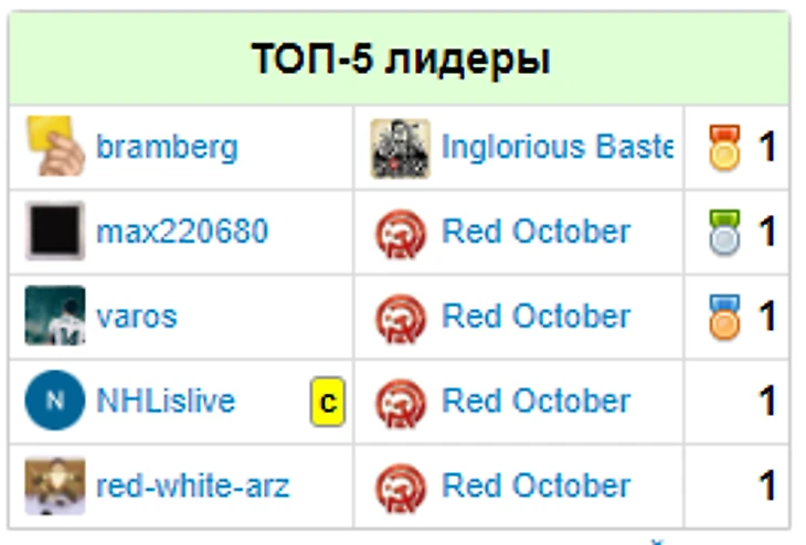 Приятно, что участники нашего турнира заняли очень высокие места в ОЗ: капитан Weekend Warriors devic33 занял 2-место, unLost14 из Red Machine - 3-е место, капитан и лидер Октября - NHLislive - 4 место, Drog из Fighters - 9-е.