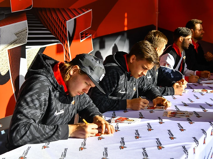 Добрая традиция праздников «ястребов» - большое количество интерактивных площадок, где каждый может найти себе развлечение по вкусу. Тематические качели и мини-ворота для самых маленьких, аквагрим и бесплатные стрижки для ценителей прекрасного, для любителей техники – уголок киберспорта и слоу-мо камера 360 градусов. А ещё стена поддержки «Авангарда», зона моментальной фотографии, точки питания и продажи атрибутики и, конечно, возможность получить автограф кумиров.