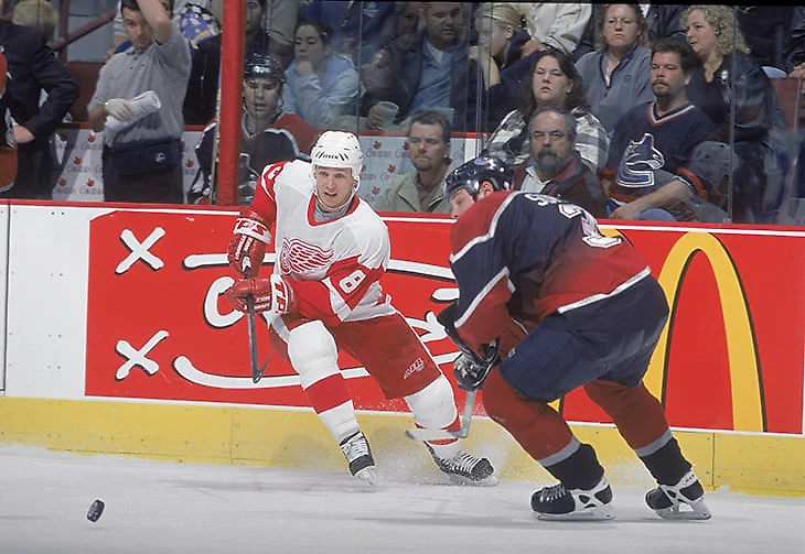 Еронко: Драка с «Колорадо» была то ли в 1996-м… Нет, была в 1997 году. Это был март, уже перед тем, как «Детройт» наконец выиграл Кубок Стэнли – первый за много-много лет. Но нет. Во-первых, в сезоне-96/97 Боумэн редко выпускал всю пятерку. В сезоне-95/96 они играли все вместе и мы засматривались, потому что настолько это было круто, отличалось от того, что мы видели.