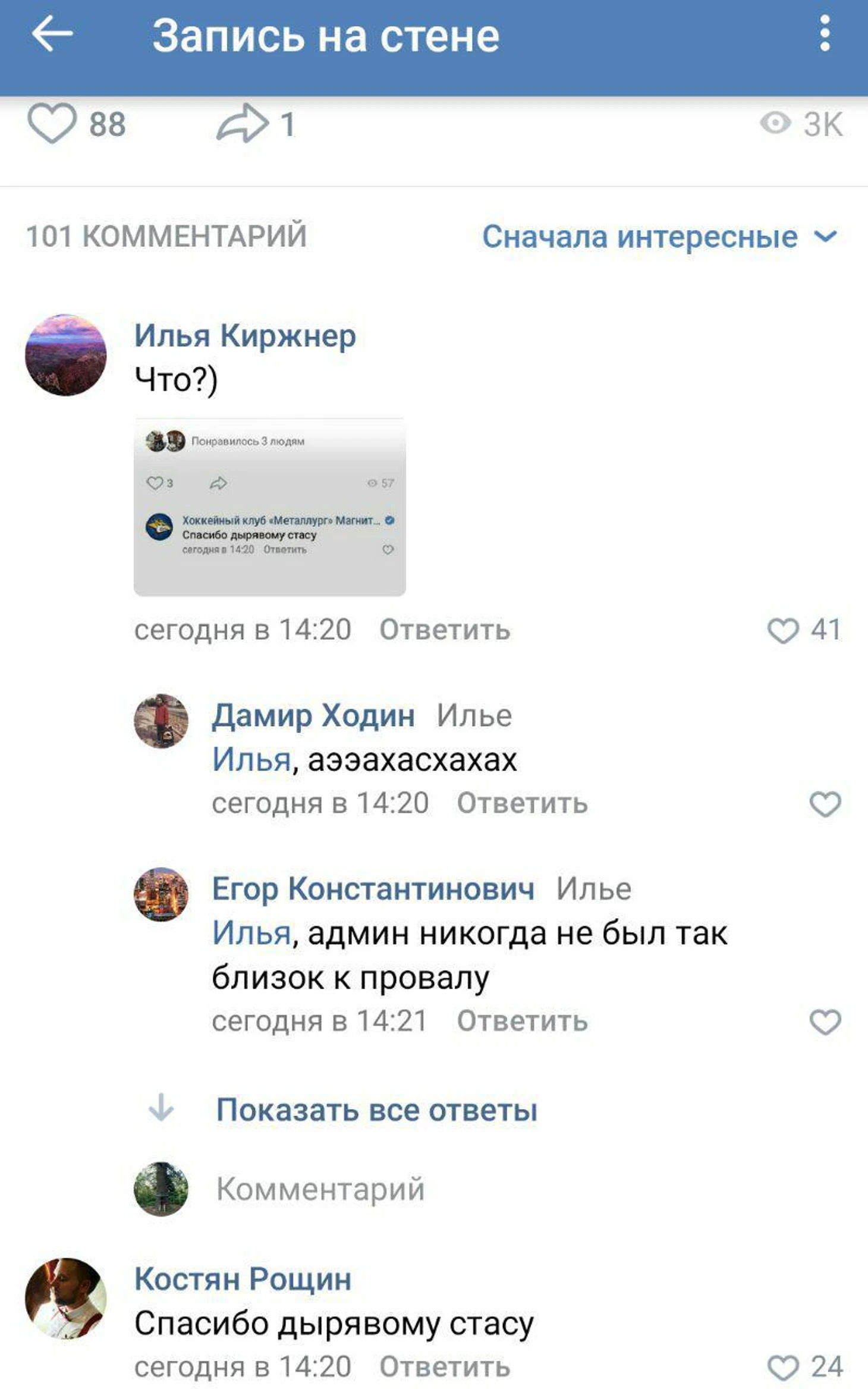 Клуб КХЛ оскорбил своего игрока Вконтакте. Удалили запись только через пару часов