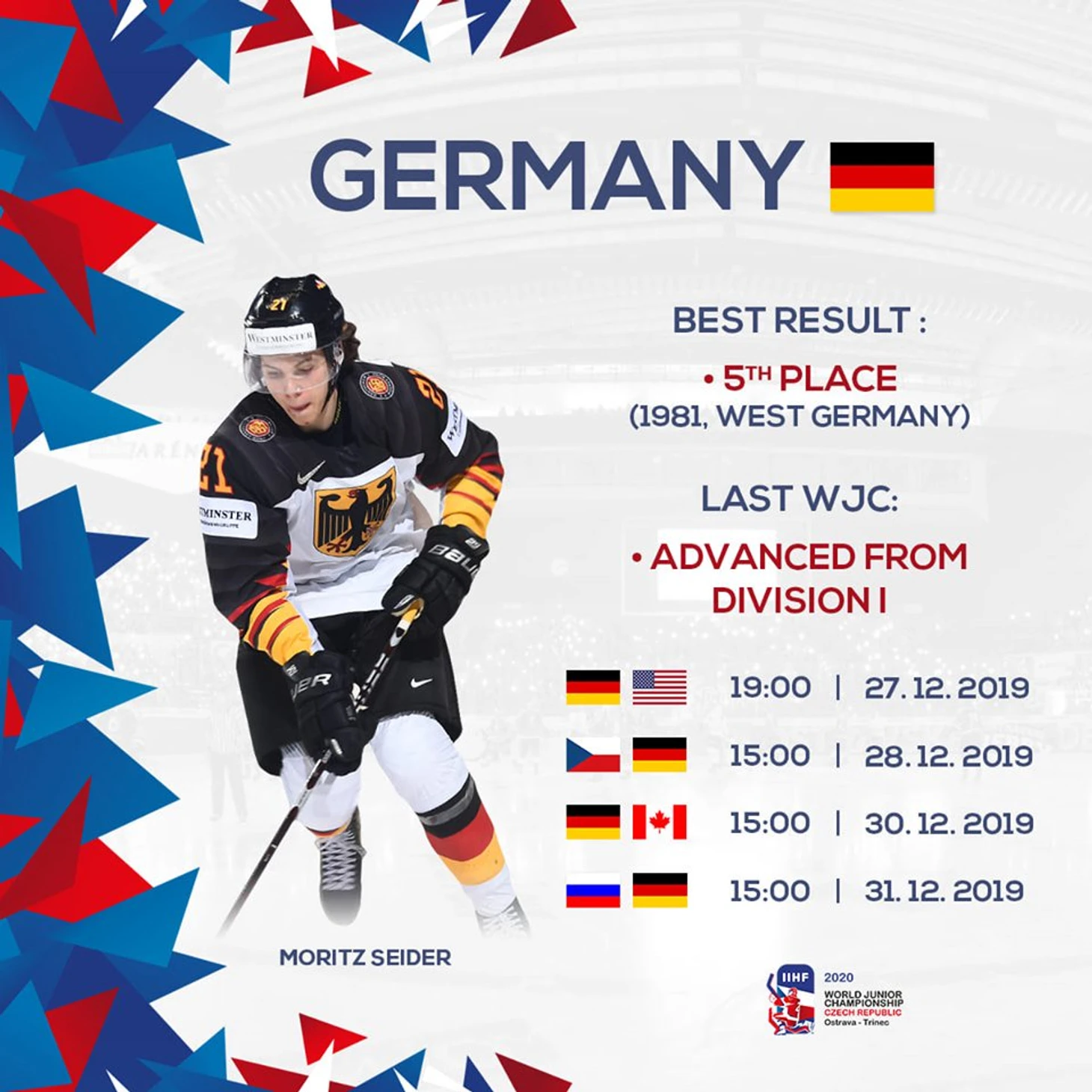 Попав в сумасшедшую группу к хозяевам чемпионата, сборная Германии получила самый суровый календарь до окончания группового этапа, так как великое счастье сыграть сразу против четырех топовых команд в течение пяти дней дается далеко не всем и далеко не всегда. Из-за того, что МЧМ-2020 проводится не в Канаде, а в Чехии, организаторы турнира в очередной раз наплевали на всех нейтральных болельщиков и поставили матчи в двух разных городах в одно время, поэтому наслаждаться молодежным хоккеем по 10 часов в сутки в прямом эфире уже не получится.
