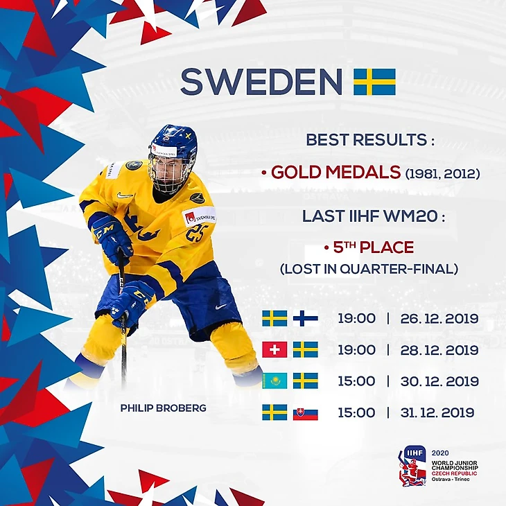 Заранее получив сложного соперника по четвертьфиналу (в параллельной группе собрались три фаворита, хозяева турнира и талантливая сборная Германии), шведы наверняка будут стараться свести к минимуму риск во второй раз подряд пролететь мимо борьбы за медали. Для этого им нужно во что бы то ни стало занять первое место в своём квинтете и как можно лучше подготовиться к битве со слабейшим из возможных противников в первом матче на вылет. Единственным серьёзным оппонентом сборной Швеции в декабрьских встречах, судя по всему, станет сборная Финляндии, которая отправится на защиту титула без Йеспери Котканиеми и Каапо Какко. В этом году у финнов должна получиться яркая атакующая команда, которая вполне может прервать победную серию "Трёх Корон" в первый же день группового этапа.