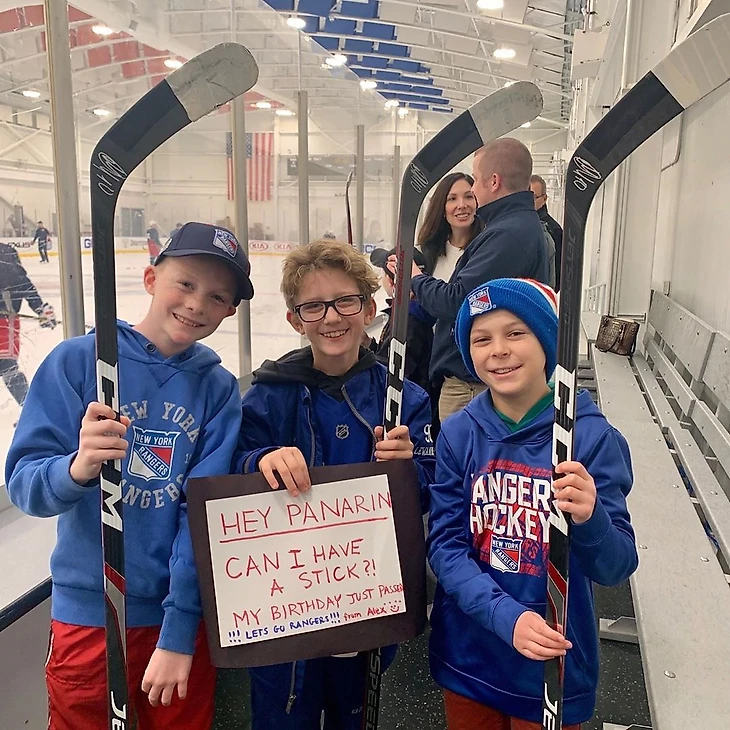 Артемий Панарин лишний раз доказал, что сосредоточен не только на хоккее – во время занятия «Рейнджерс» в тренировочном центре Madison Square Garden он подъехал к бортику с охапкой клюшек и раздал их пацанам за бортиком, наблюдавшим за тренировкой.