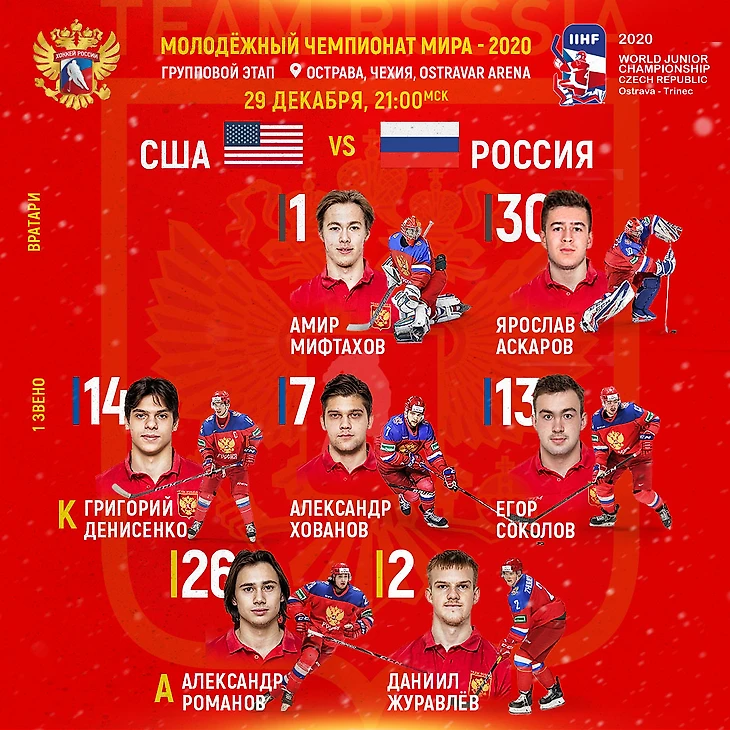13:30 Привет всем, кто следит за МЧМ-2020 (а после 6:0 с Канадой количество таких людей резко выросло). Сегодня нас ждет не менее мощная заруба – играем с молодежной сборной США, и с точки зрения турнирного положения это не менее важный матч, чем с «кленовыми».
