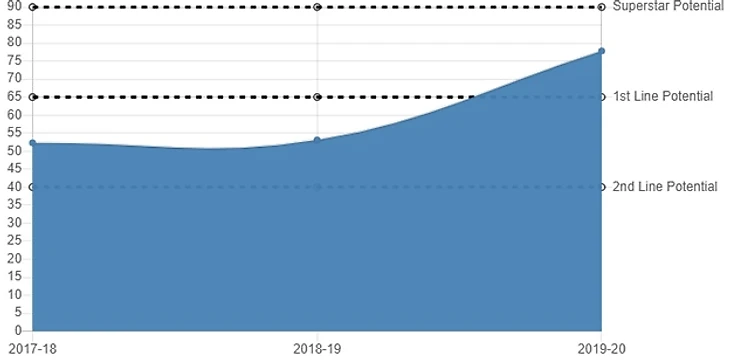Мэйсон Блэк, известный статистический гик, рассчитал скорость изменения очков потенциального игрока в среднем из года в год. В расчет брался прогресс типичного игрока НХЛ, и то, как его очки за игру менялись от года к году в конкретной лиге. Затем была проведена корреляция между очками игрока за игру и его производительностью в лиге. Рассчеты были проведены на основе базы данных всех хоккеистов НХЛ за последние 15 лет. К слову, этот рейтинг также позволяет понять, насколько качественно нападающий выполняет защитные функции, и наоборот. Также здесь учтен возраст хоккеиста – чем он моложе, тем индекс выше.