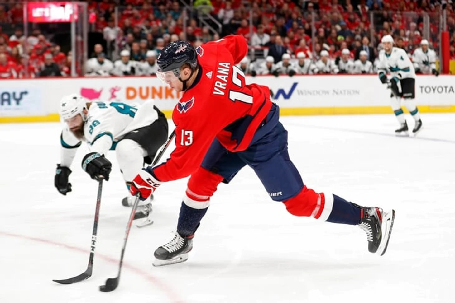 Защитники «Сан-Хосе» сначала не успели к Вране, а чуть позже дали спокойно бросить Оши. За 46 секунд «Вашингтон» совершил камбэк.