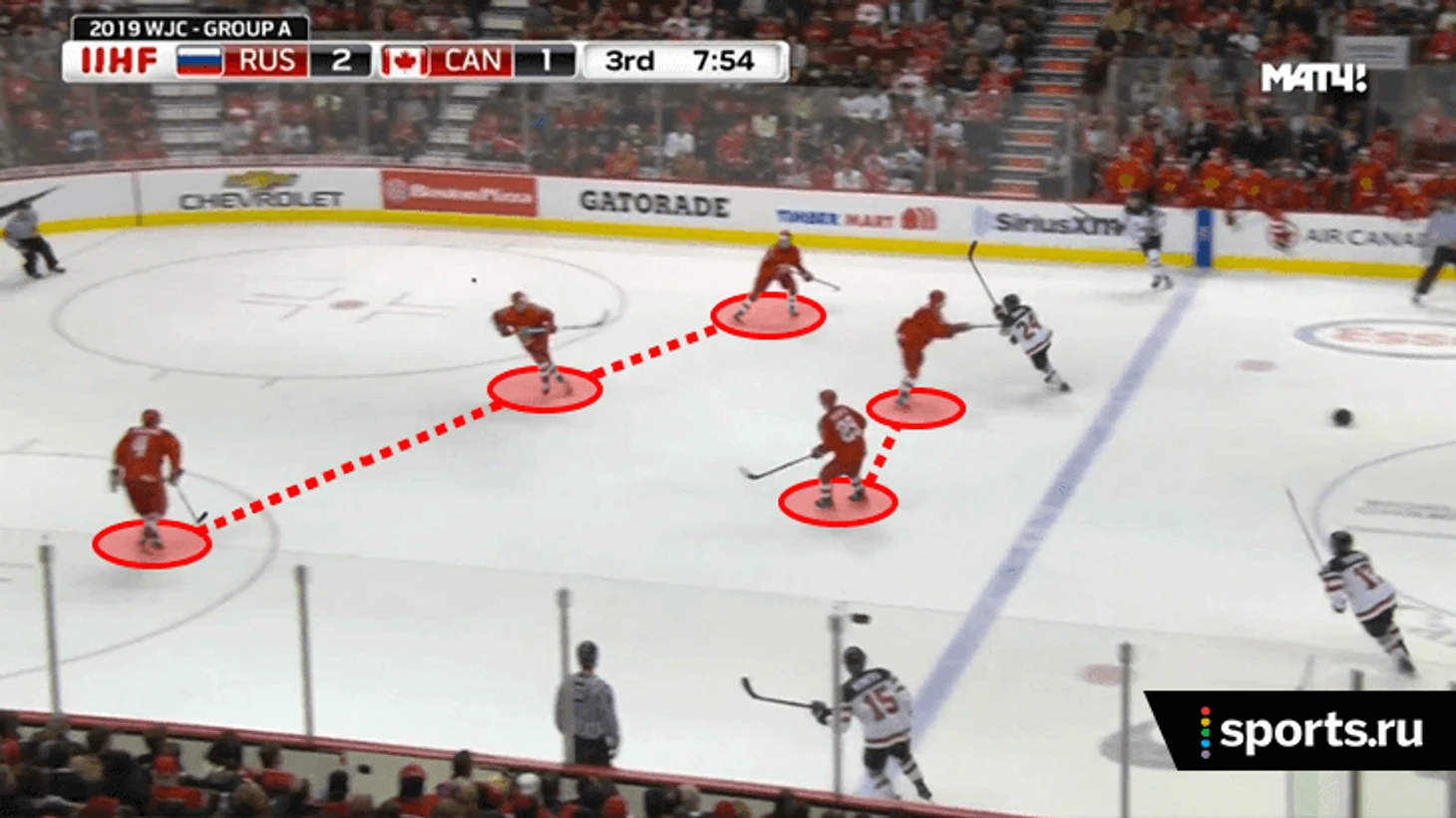С точки зрения схем в прессинге сборной России нет ничего особо прорывного: он просто учитывал сильные качества наших нападающих (скорость, цепкость, габариты) и раскрывал их. Мы летели вперед не так агрессивно, как Северная Америка U23 (возможно, самая реактивная команда в истории хоккея – я сейчас не шучу) – по схеме 1-2-2, а не 2-1-2, но это тоже здорово работало.