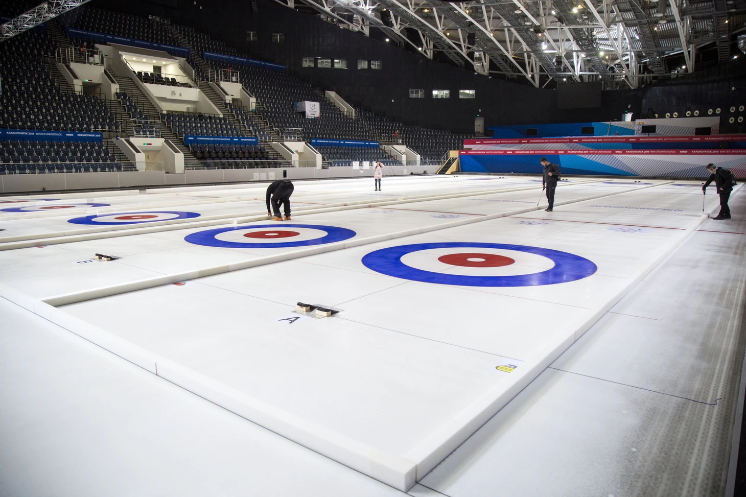 17 декабря 2018 года. Дворец спорта имени Ивана Ярыгина. Подготовка арены к Кубку России по кёрлингу среди женских команд