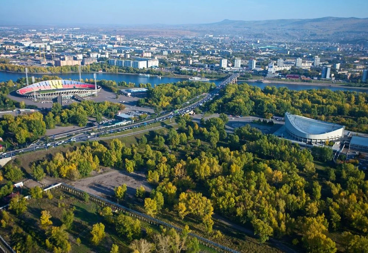 Красноярск. Дворец спорта имени Ивана Ярыгина и Центральный стадион (ранее - имени Ленинского комсомола)