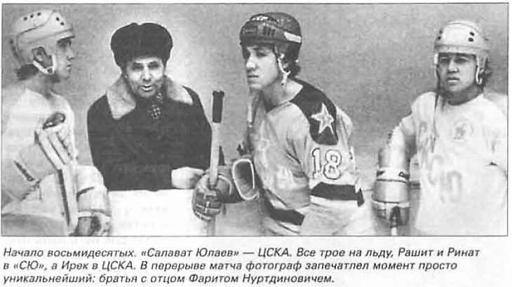 Итак, продолжаем наши воспоминания о братьях-хоккеистах, ковавших славу советского хоккея, а в данном случае и уфимского, хотя старший, Ирек, стал известен, благодаря выступлениям за ЦСКА, за который играл и Рашит, а также Сергей Гимаев, их однофамилец, но тоже из Уфы.