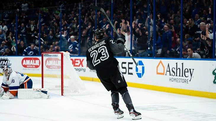 "Тампа-Бэй Лайтнинг"-"Нью-Йорк Айлендерс" 3:1.Брейден Пойнт набрал 2 очка (1+1),Никита Кучеров отдал 2 результативные передачи,Андрей Василевский отразил 17 бросков."Молнии" выиграли 6 матч подряд.