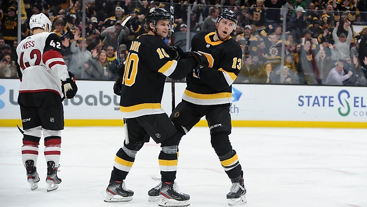 "Бостон Брюинз"-"Аризона Койотс" 4:2.Патрис Бержерон набрал 3 очка (1+2),Чарли Койл забросил 2 шайбы,Давид Пастрнак отдал 2 результативные передачи,Туукка Раск отразил 29 бросков.В первом периоде Джереми Лоусон получил матч-штраф."Медведи" выиграли 6 матч подряд.