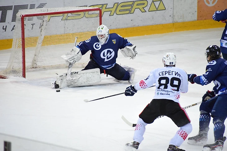 «Динамо» и «Гомель» уже в первом матче оправдали статус самой интересной и равной пары первого раунда плей-офф. Хотя начиналось все за явным преимуществом хозяев. Парни Дмитрия Кравченко в первом периоде практически смяли соперника, исполнили почти в четыре раза больше бросков. Но забросили лишь единожды, на самом «флажке» - за мгновение до перерыва Боярчук реализовал большинство. Из раздевалки «рыси» вышли заведенными. И через шесть минут организовали свой гол: Бовин воспользовался обрезкой динамовцев на собственной синей и сравнял счет. Более того, гомельчане вскоре вышли вперед, использовав пауэрплей. Правда, в этом в целом равном периоде логичной выглядела и шайба «Динамо» - это Боярчук оформил дубль. В третьем периоде, казалось, все уверенно шло к овертайму. Команды много удалялись, но шансы в большинстве не использовали. Но за четыре с половиной минуты до сирены Грецкий (да-да, тот самый, с матча всех звёзд КХЛ) подарил «Динамо» победу, поразив ворота Грищенко при игре в формате «четыре на четыре». Как итог победа динамо 3:2 и счёт в серии 1:0.