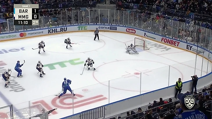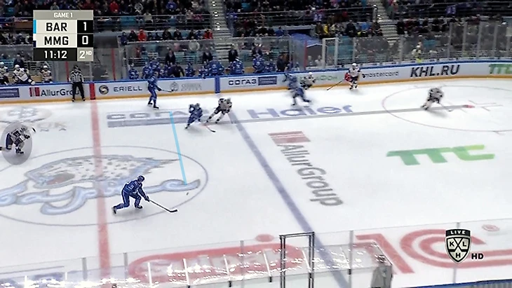 Диц обошёл нападающего, который лишь обозначал прессинг. Бирюков почему-то решил пойти на соперника, хотя Металлург играл в меньшинстве. Диц пробросил шайбу вперёд и спокойно объехал Бирюкова.