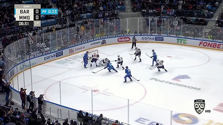 Чем дальше, тем лучше игроки Металлурга проявляли себя в борьбе, а прессинг приносил больше пользы. Барыс прижимался и отбрасывался.