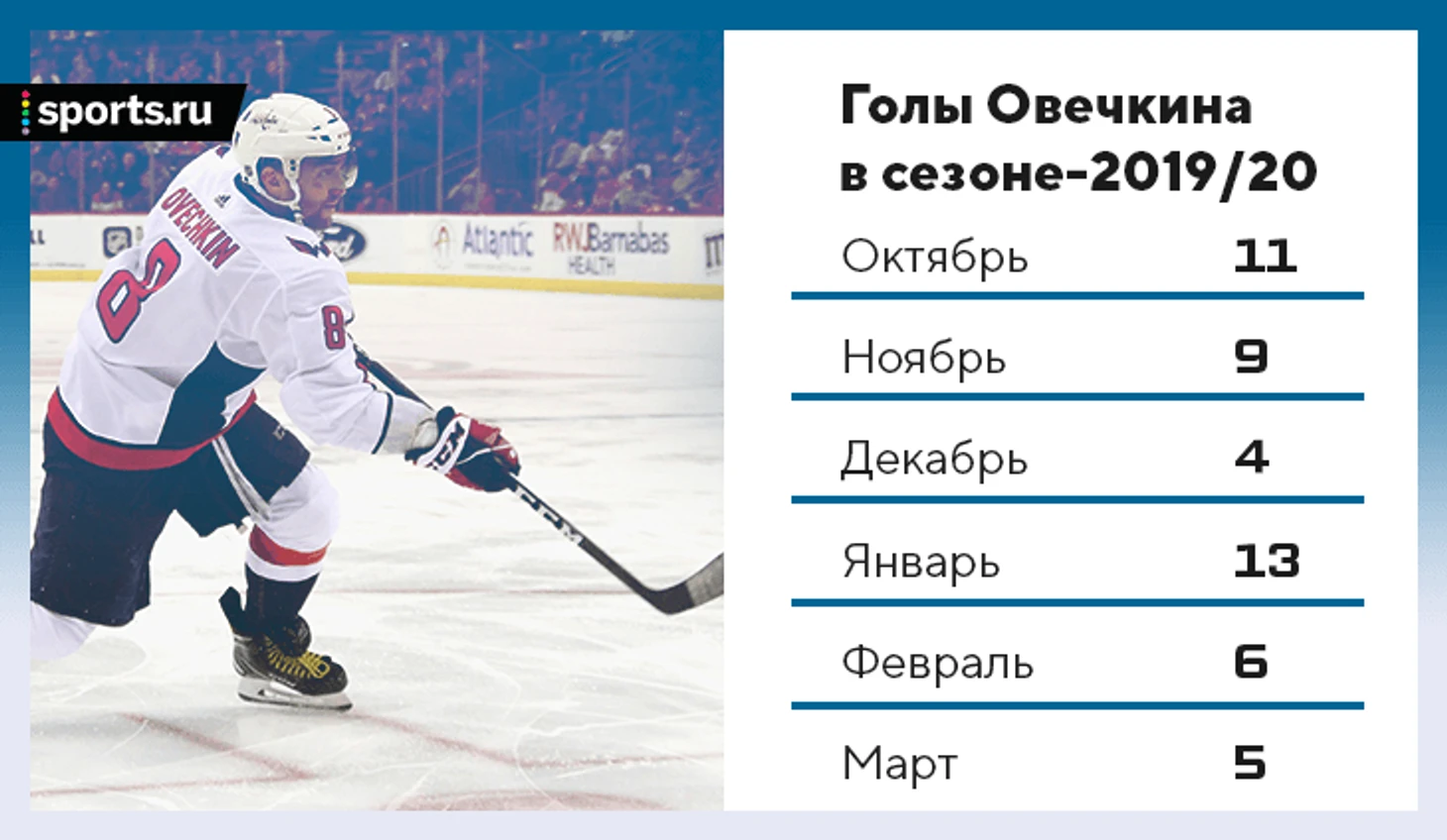Этот сезон должен был стать лучшим для Овечкина по голам за последние лет 10. Он готовился жечь и дальше, но коронавирус – и остановка сезона в НХЛ.