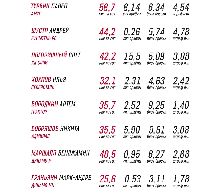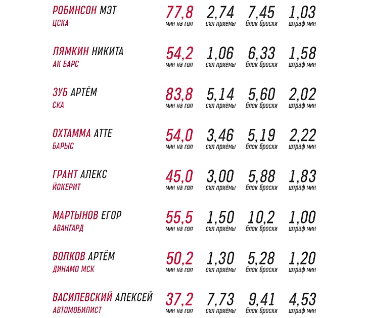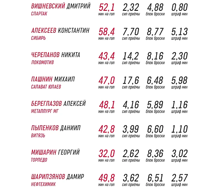 Составлен он следующим образом. Сначала были отобраны игроки обороны, при которых команды пропускают реже всего. Затем из них выбраны по одному защитнику от каждого клуба по дополнительным показателям: силовым приёмам, блокированным броскам и наименьшему количеству штрафных минут.