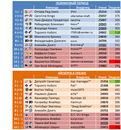 Потом плей-офф (10 недель). В плей-офф выходит 8 команд от АЙСБЕРГОВ и 9 команд от ЛЕД ПЕРИОДА. Формат плей-офф в процессе обсуждения.