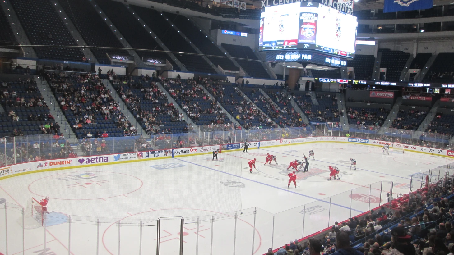 Домашний матч «Хартфорд Вулф Пэк» в сезоне 2019/2020 с полупустыми трибунами