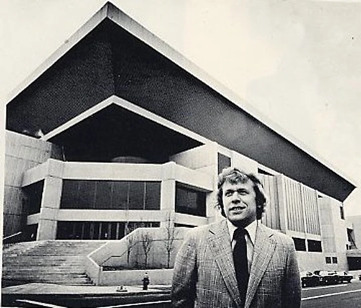 Ховард Болдуин на фоне «Хартфорд Цивик-центра», 1970-е