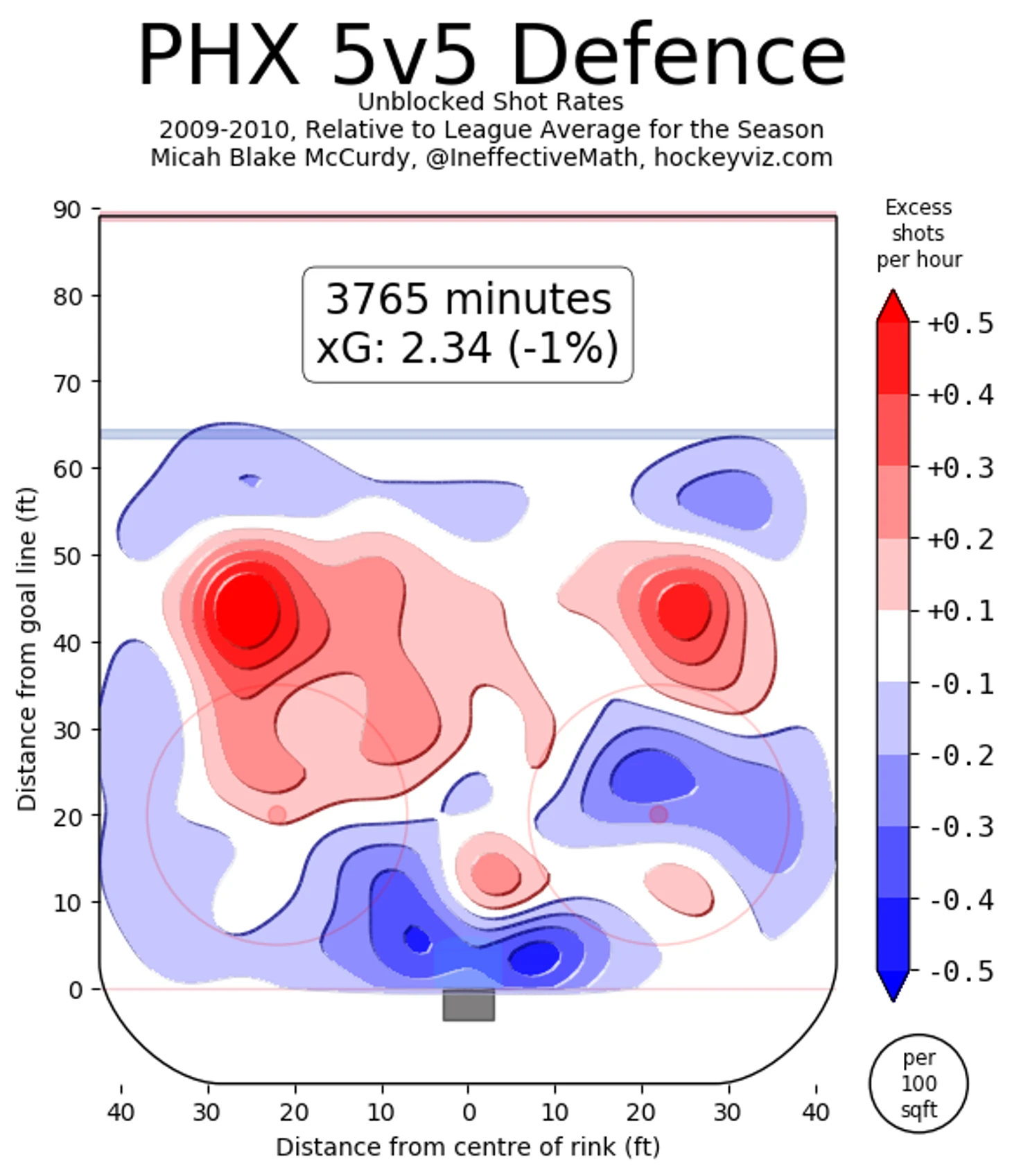 За четыре года Брызгалова в Аризоне нападающие команды только один раз смогли пробить 30 шайб – это удалось Шейну Доуну. Зато в обороне был порядок. Если брать броски в равных составах в сезоне-2009/10 (лучший в карьере Брызгалова), то по сравнению с остальной лигой «Финикс» очень мощно запирал свой пятак – количество бросков с ближнего и дальнего было ниже, чем в среднем по НХЛ.