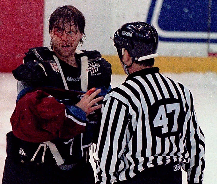 Самый дикий момент вечера – Брендан Шенахан влетает в Патрика Руа прямо в воздухе. На Олимпиаде-1998 вратарь сказал партнеру по сборной, что в стычке повредил плечо, которое после той игры уже не было таким, как раньше. Шенахан говорит: «Я уважал Руа и симпатизировал ему, но в тот момент я подумал только одно: «отлично!».