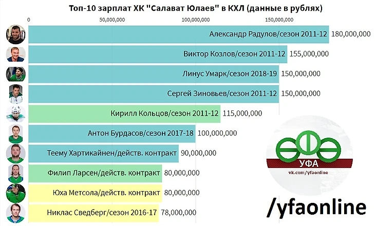 Топ-10 зарплат игроков ХК Салават Юлаев