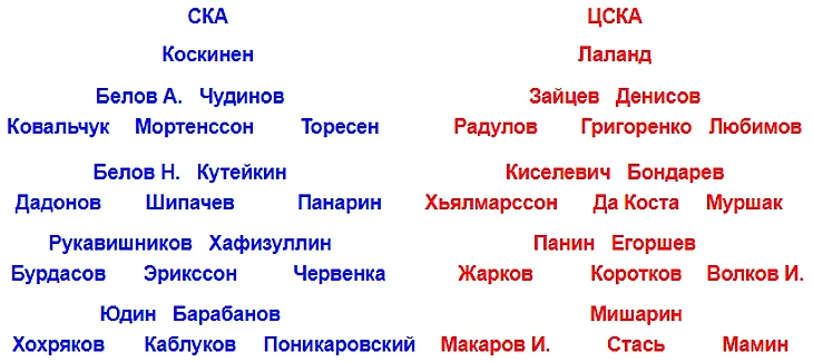 Если все остальные команды проигрывали СКА-2015 и Металлургу-2016 без шансов, можно ли в чём-то упрекать Квартальнова, который проигрывал им в седьмых матчах? Тут пожалуй достаточно сравнить составы команд и будет видно, как ЦСКА пытался наскрести игроков хотя бы на два сильных звена, а СКА выставил три прекрасно укомплектованные тройки нападения, ещё лучше видно превосходство СКА во вратарской линии: